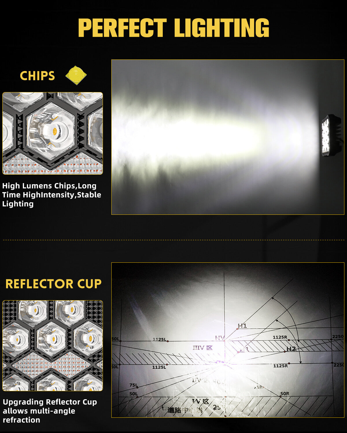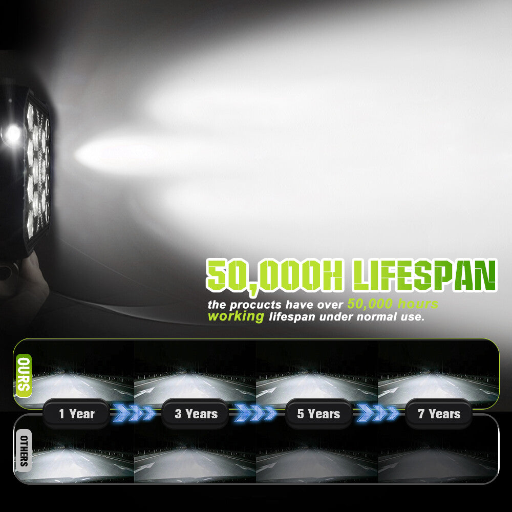 Using the most advanced lighting technology, breaking the traditional 4 "led strip drive lights. The extreme distance and wide view are ideal for high speed and dangerous curve situations.