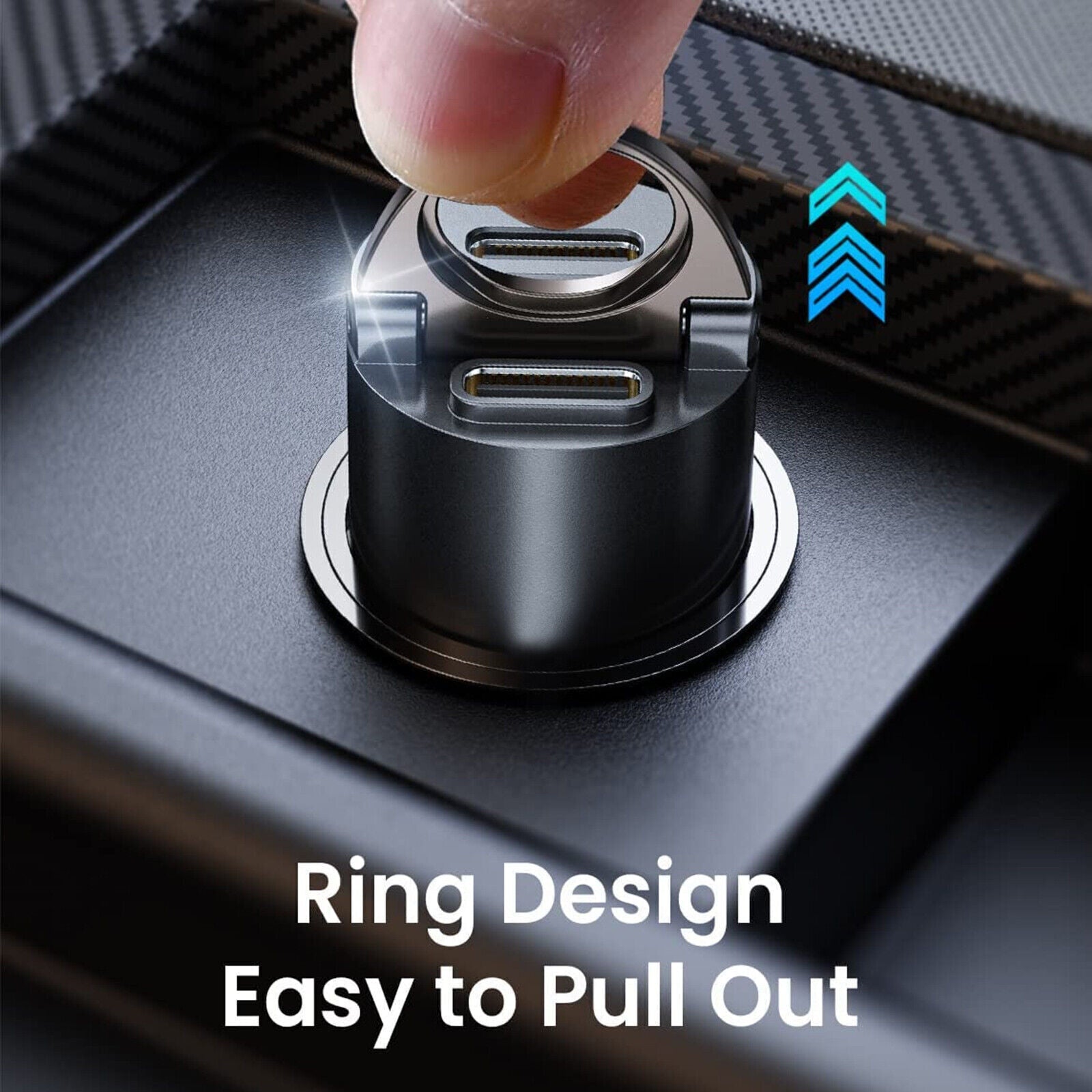 Mini thumb-sized(Size: 1.6inch*0.8inch) body of type C car charger snug fits most cigarette lighters and sits comfortably with the edge of the outlet, freeing up more space and portable for you to take everywhere. Besides, A pop-up handle will help you pull the fast car charger out easily.